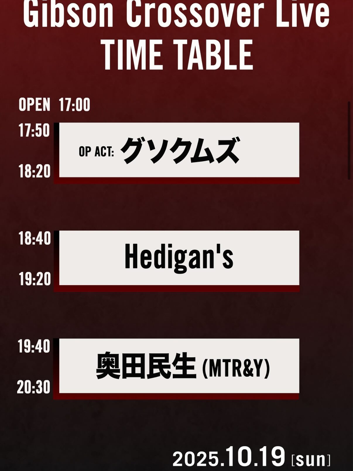 奥田民生さんはユニコーンの時から、Hedigan’sはSuchmosから、グソクムズは初めてでしたが、どのバンドもとても個性がありよかったです!